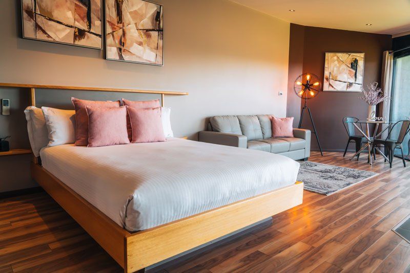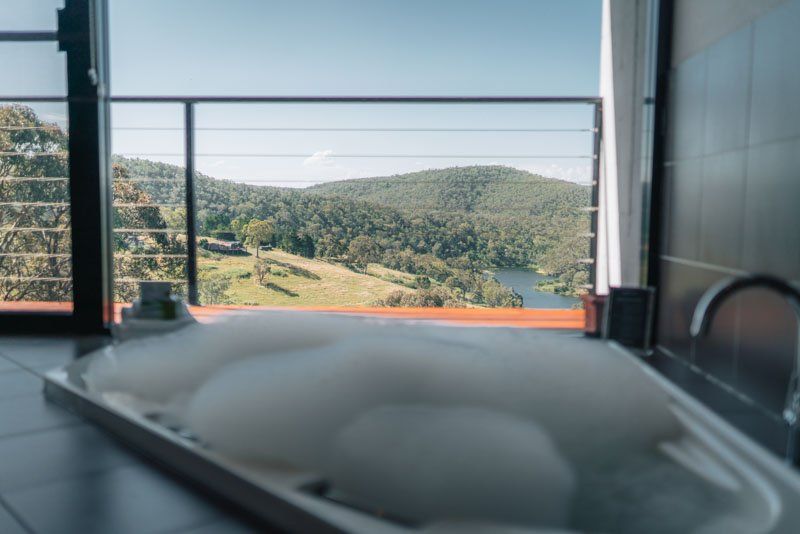Overlooking the gentle hills of Cox's River and surrounding valley, our River View King Spa Suites are the ultimate in indulgent comfort with modern conveniences. Luxury Super King beds, floor level spa bath and private BBQ on your verandah.