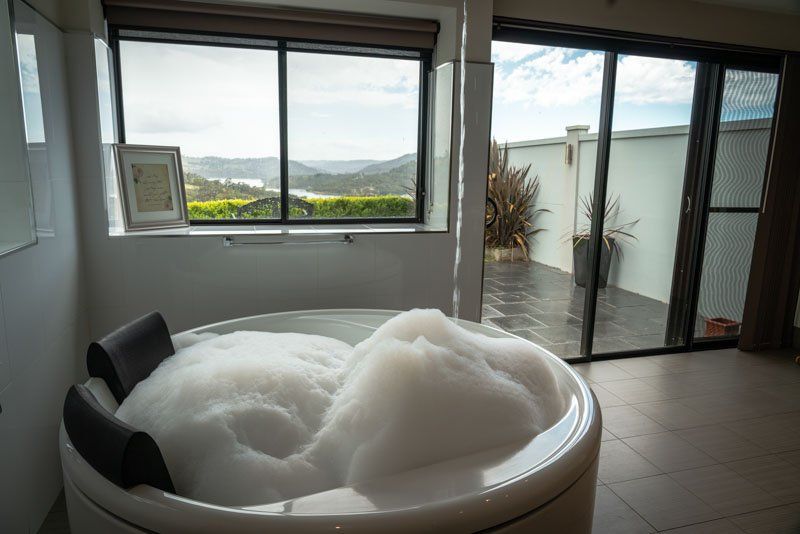 An absolute haven of comfort and elegance, bathed in natural light - illuminating this spacious suite. Designed with a refined elegance and beautiful views overlooking Lake Lyell, this suite is the pinnacle of comfort & romance. Some features include : - plush king size bed, pure shower indulgence with double shower & body massage shower heads, free standing spa bath in which to retreat, destress & re-energise, gas fireplace & fully self-contained kitchenette.