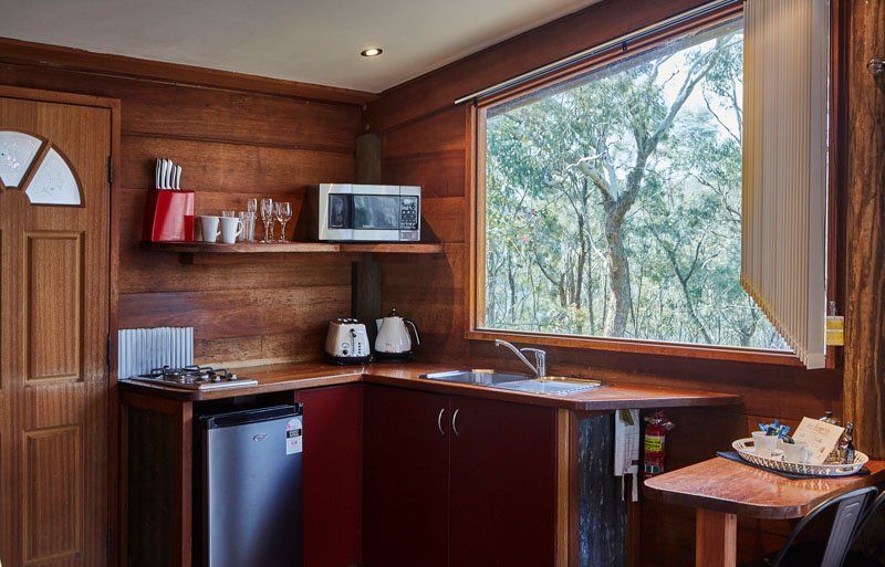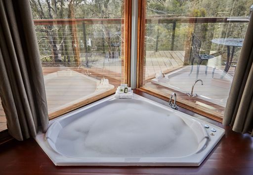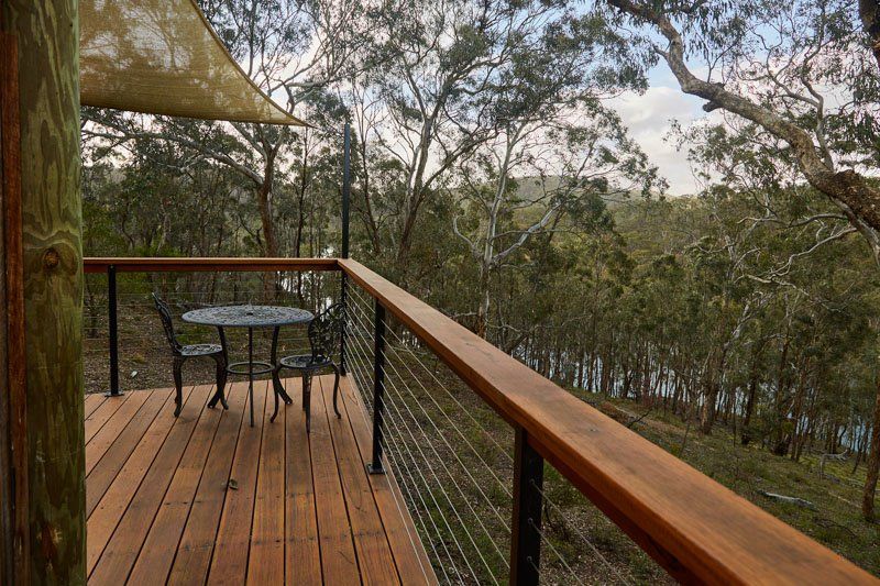 Discover the Australiana charm of our four Wilderness Spa Cabins. With private verandahs looking out through the trees towards Lake Lyell these charming cabins are constructed of recycled Oregon and corrugated iron. Nestled snugly in our beautiful bushland with gently filtered views of Lake Lyell.